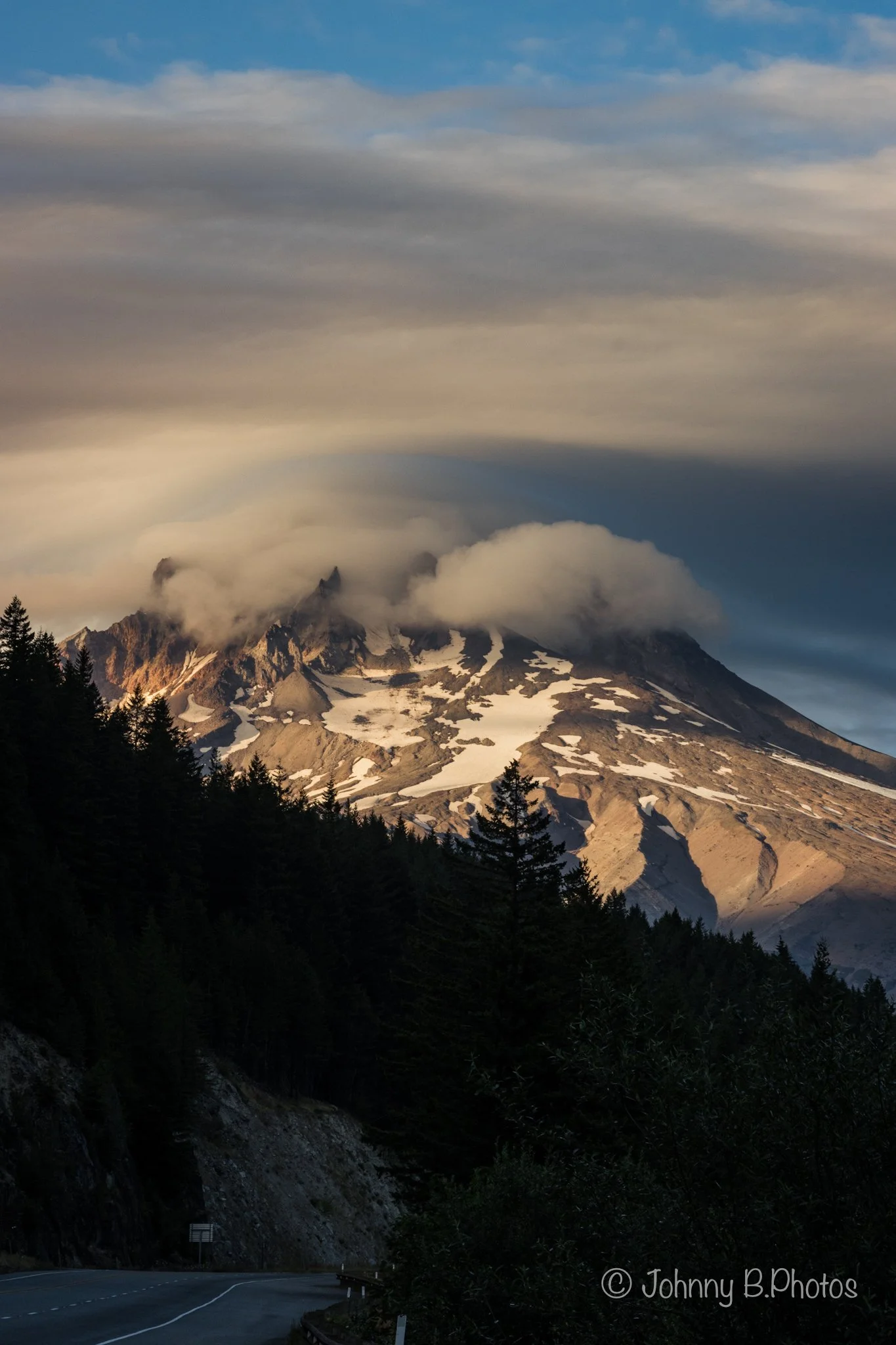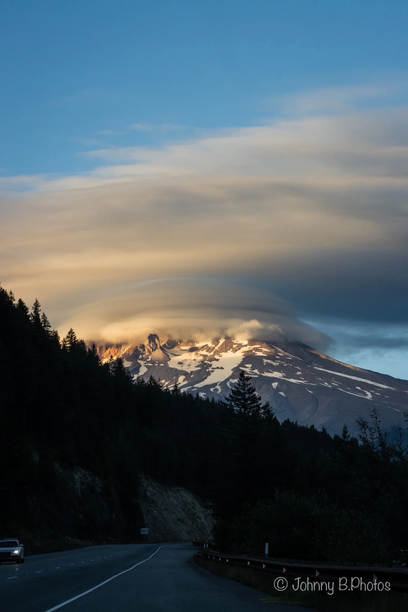 Right before you get into Government camp you go down this small road off highway 26 and you only have to hike in like 25 minutes and get to witness this Beaty! Snow packed down, freezing temperatures, no one else on the path. Was an incredible trip!