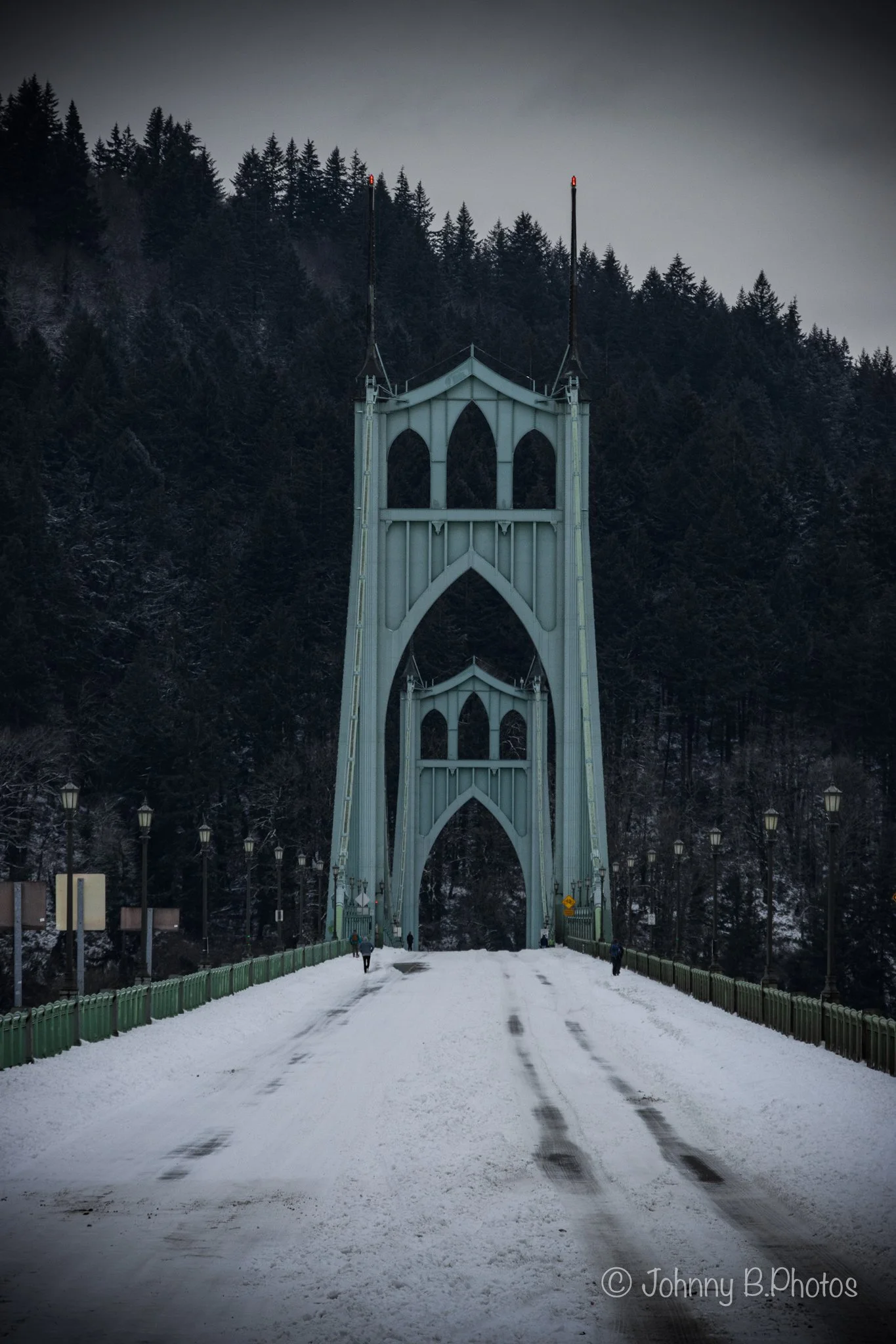 From the infamous St. John’s Bridge in Portland, OR. To the lodges of Government Camp, OR. Anywhere looks a little better with snow!
